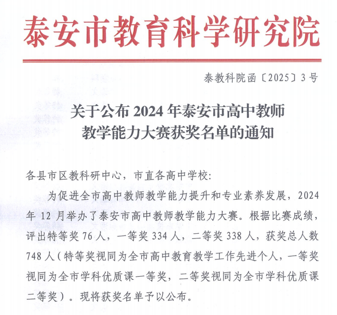 泰山外國語學校教師在2024年泰安市高中教師教學能力大賽中斬獲佳績